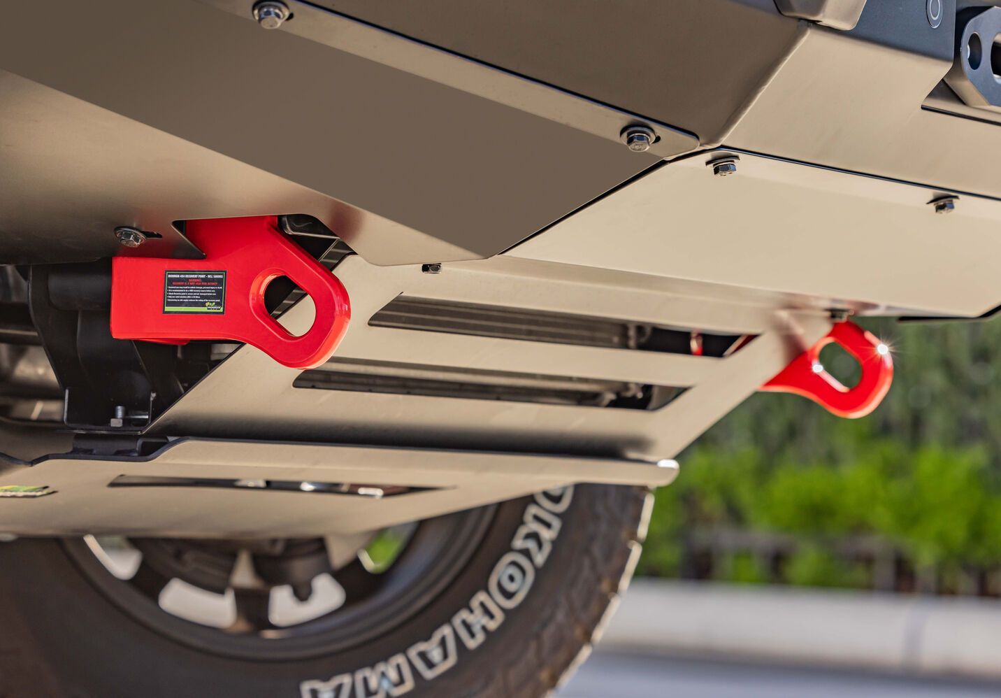 Rated Recovery Points that are designed to safely withstand the vehicle load during recovery. Coloured red for easy identification, our recovery points are great for winching and snatch recoveries.